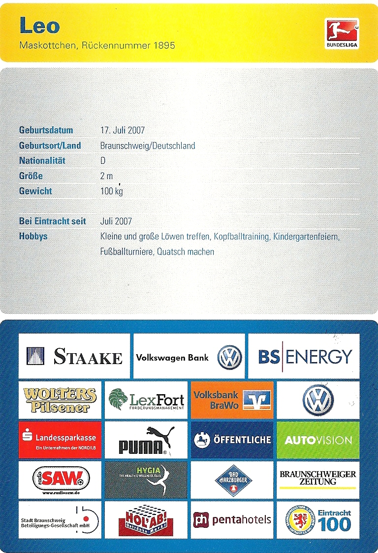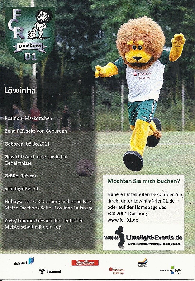 Fußball Leo (Braunschweig) Löwinha (Duisburg Frauenfußball) Paule (DFB) Sechzger und Sechzgerl (1860 München) Willi Wildpark (Karlsruhe)
